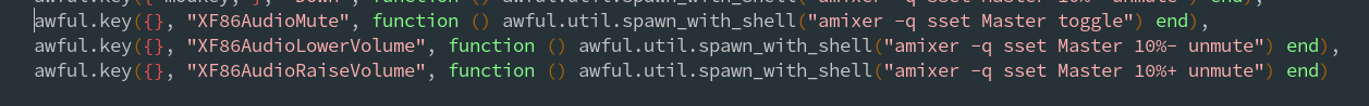 如上图所示,在awesome wm 中控制音量一般通过在rc.lua 上加入配置来完成